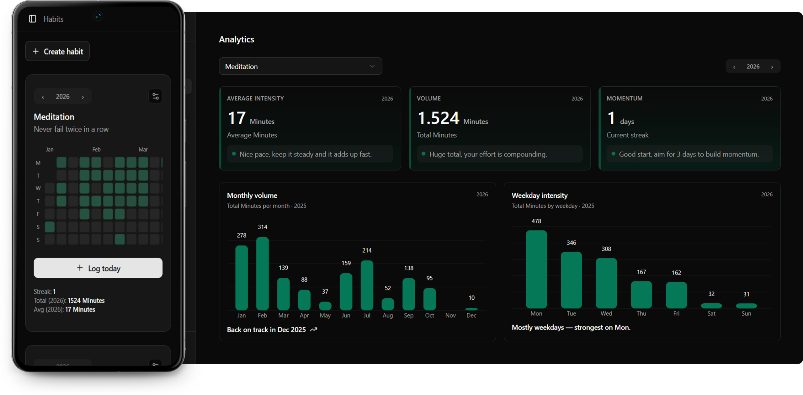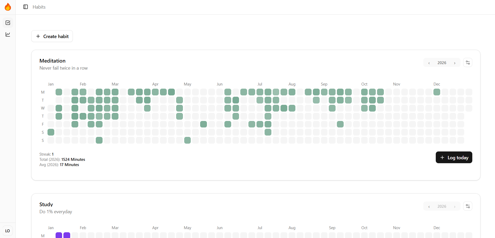 From daily study sessions to meditation and exercise, HabitHeat tracks what actually matters.